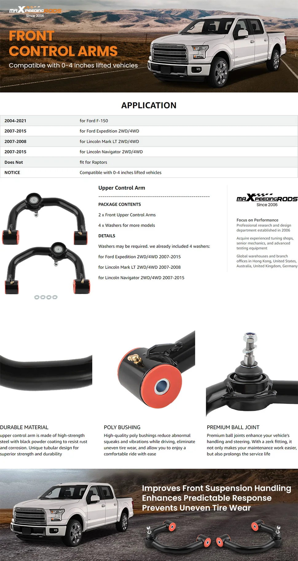 0-4“ Lift Front Upper Control Arm Kit for Ford F-150 F150 2WD 4WD 2004 2005-2021