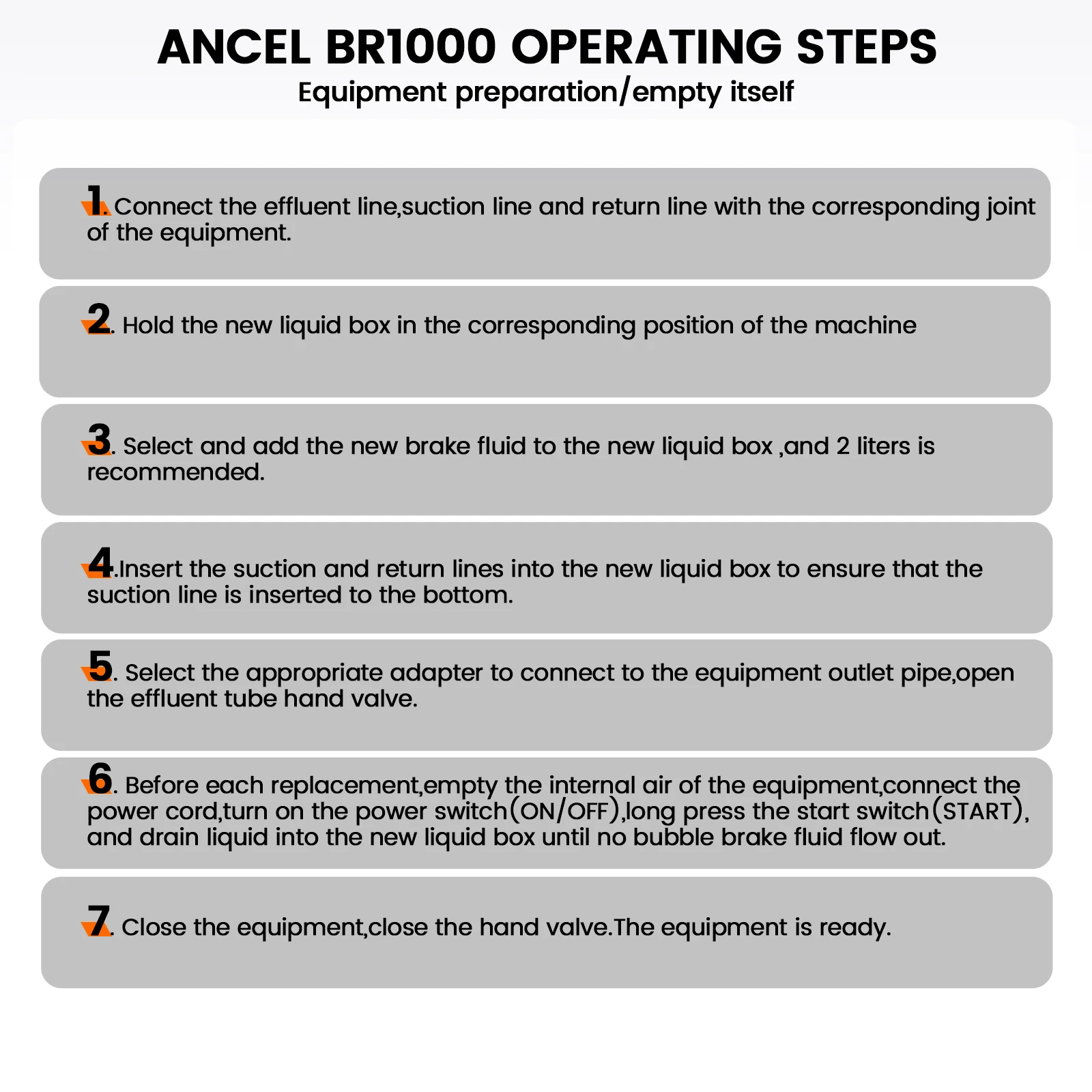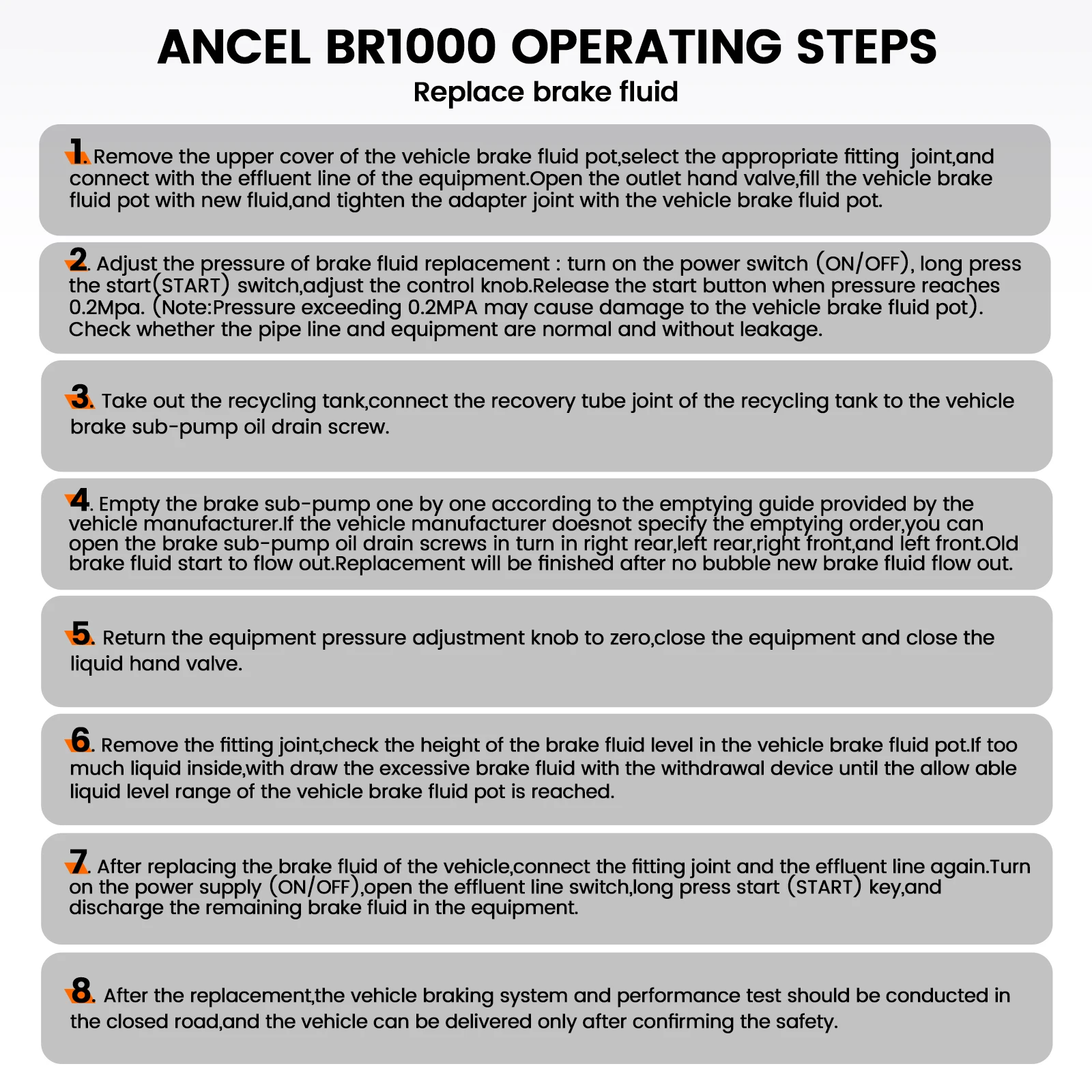 When the brake fluid in the new fluid pot is consumed, the equipment will automatically shut down to avoid inhaling air into the brake system.