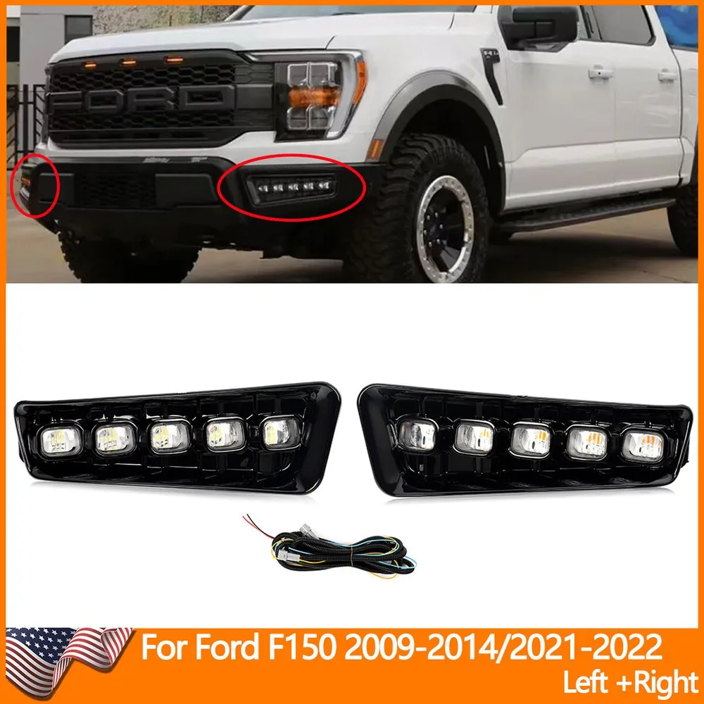 For Ford F150 F-150 Raptor Style Left Right Fog Light 4-Door 2009-2014 LED Fog Light Dynamic Turn Signal DRL Plug and Play