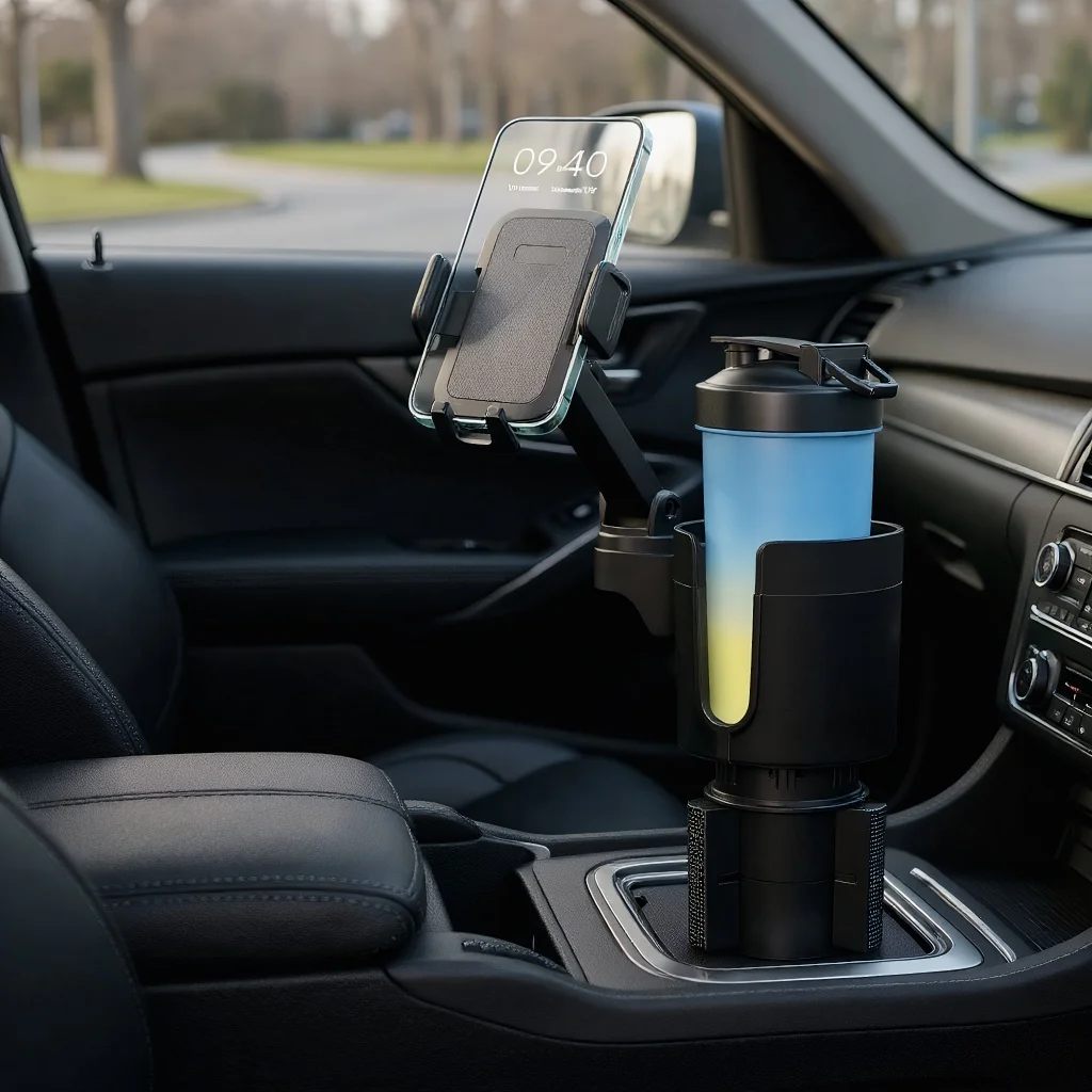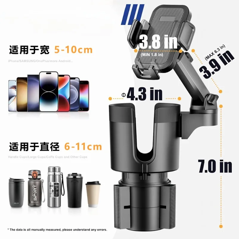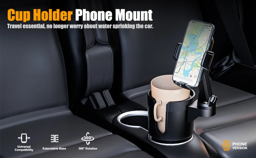 2 in 1 of car cup holder expander+phone mount for car, which is not only a car phone holder, but also a nice car cup holder expander. It’s convenient and easy to place your cellphone on the car phone mount, and also put a large bottle in the cup holder.